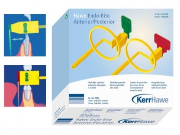 El Endo-Bite de Kerr es un portador de películas y placas radiológicas, especial para diagnósticos de rayos X de instrumentos de endodoncia durante tratamientos de raíz, comprueba en la obturación del canal e inserta pernos y tornillos y para uso en general cuando la mordida está bloqueada (por ejemplo abrazaderas en los diques de goma).