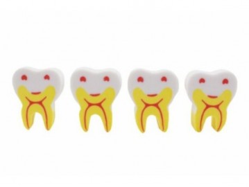 Cada paquete contiene 60 unidades de gomas con forma de molares, ideales para incentivar a los niños a mantener una buena higiene bucal.