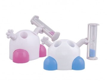 | Características: - Diseño innovador: Forma divertida y colores atractivos para los niños. - Personalizable: Agrega el logo de tu clínica para un toque único. - Reloj de arena: Indica el tiempo ideal de cepillado (2 minutos). - Base estable: Evita derrames y mantiene el cepillo organizado. - Material resistente: Duradero y fácil de limpiar. | Contenido: 6 unidades Referencia(s) del Fabricante: 0905082 |