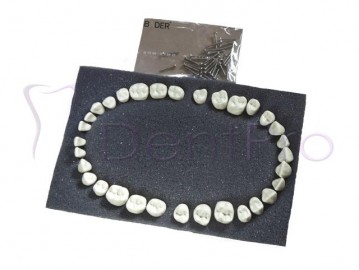 | Características: -Arcada completa de adulto x32 dientes -Dientes para modelo de estudio -Dientes para reposición -Incluye 32 tornillos | Contenido: -32 dientes Referencia(s) del Fabricante: -0905000-1 |