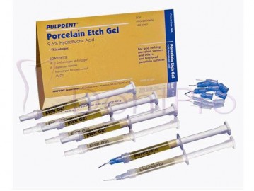 | Características: -Indicado para coronas de porcelana, carillas, inlays y superficies de porcelana fracturadas antes del adhesivo son grabadas perfectamente por este ácido -De fácil retirada -No deja rastro de suciedad en Cerámica,composites o cementos de resina | Contenido: -4 Jeringas de 1,2 ml -8 cánulas Tips Referencia(s) del Fabricante: -04-011 CL |