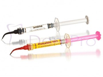 | Características: -Gel de ácido fluorhídrico aprobado para uso intraoral -Fácil de controlar y de aplicar -No mancha el composite ni la resina de fijación -Silano monocomponente | Contenido: -2 jeringas de 1,2 ml (1,33 g) de Porcelain Etch -2 jeringas de 1,2 ml (0,96 g) de Silane -20 puntas Black Mini Brush -20 puntas Inspiral Brush Referencia(s) del Fabricante: -405 UL |