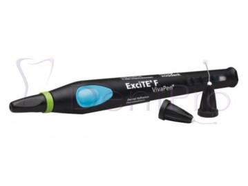 El Ecxite F Vivapen de Ivoclar Vivadent es un adhesivo de grabado total mono componente fotopolimerizable. Especialmente indicado para la colocación de restauraciones directas (composites, compómeros), cementación adhesiva de restauraciones indirectas (cerámica sin metal, materiales compuestos), con fotopolimerizado. Excite F ofrece una dispensación práctica y económica gracias al VivaPen (aprox. 120 utilizaciones). Excite F posee un fuerte vínculo con el esmalte y la dentina. Gracias al espesor de la película aplicada ofrece un ajuste exacto en las restauraciones indirectas. Libera flúor y además ofrece una mayor calidad debida a la ausencia de acetona. Al sellar perfectamente las superficies de dentina Excite F de Vivadent ofrece una reducción de la sensibilidad postoperatoria
