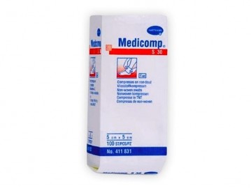 | Características: Su composición es de 70% viscosa y 30% poliéster le proporcionan una estructura parecida a las compresas de algodón y hace de Medicomp un producto especialmente absorbente, suave y transpirable. -Medicomp se usa y aplica como una compresa de algodón, pero con mas absorción que una gasa convencional. -Tamaño plegado: 5x5cm. -Tamaño desplegado: 10x10cm. -Absorbe líquidos sin gotear, liberándolos sólo bajo presión. -Agradable al tacto por su suave estructura. -No estériles (posibilidad de esterilización posterior por vaporización). | Contenido: 100 Unidades. Referencia(s) del Fabricante: 411831 |