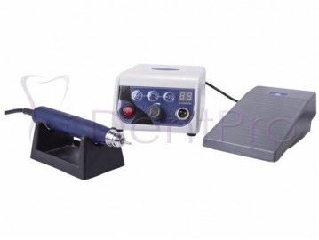 | Características: Micromotor de inducción libre de escobillas y controlado por microprocesador. -Contiene display digital de velocidad. -Motor: de inducción libre de escobillas y sensor -Rango de velocidad: 0-30,000RPM/ 0-50,000RPM -Torque máximo: 7.8Ncm -Dimensiones: Pieza de mano L155* ¢ 24mm -Peso: Pieza de mano 183gr -Potencia de entrada: 300W -Voltaje de entrada: AC110V/AC220V/AC240V -Funciones: Rotación en sentido de las agujas del reloj y al contrario de las agujas del reloj, auto-diagnóstico, muestra el error, interruptor de seguridad para inhabilitar velocidades superiores a las 30,000RPM. -Este modelo de micromotor es muy útil para trabajar sobre el banco de trabajo con el pie o la rodilla. -Contiene pantalla digital que muestra las RPM y permite trabajar de forma más sencilla. Estas pueden ser controladas mediante un potenciómetro regulador, desde 0 hasta 50,000. | Contenido: -Pieza de mano, Micromotor y Pedal. Referencia(s) del Fabricante: 09060033 |