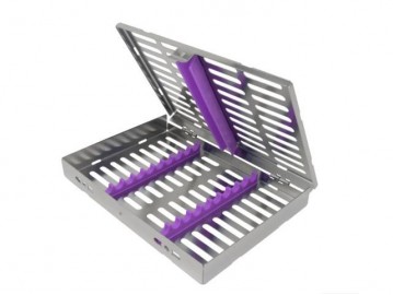 | Características: Características: - Capacidad: Diseñado para albergar hasta 8 instrumentos de diversos tamaños. - Material: Construido con acero inoxidable de larga duración y rieles de silicona suave de color. - Color: Lavanda, lo que facilita su localización visual y aporta un toque de distinción. - Organización: Ofrece compartimentos específicos para una organización eficiente de los instrumentos. - Seguridad: Protege los instrumentos de daños y contaminación durante el proceso de esterilización. - Compatibilidad: Se adapta a la mayoría de los sistemas de esterilización. - Marca: Hu-Friedy, reconocida por su calidad y durabilidad en productos dentales. | Contenido: 1 unidad Referencia(s) del Fabricante: IME12DIN86 |