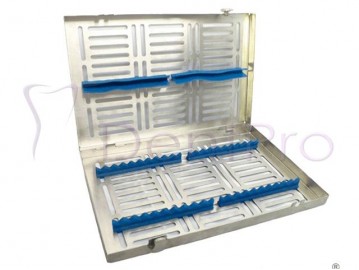 | Características: - Compuesto de acero inoxidable y silicona azul, los casetes son compatibles con todos los sistemas de esterilización. - Dimensiones en posición cerradalargo 28,5cm x ancho 18,5cm x alto 3cm - Producto dentro de la línea de endodoncia para clínica dental. | Contenido: doble cierre de seguridad para una mejor fijación de los instrumentos en el proceso de esterilización. Referencia(s) del Fabricante: 11/000 |