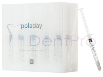 El Pola Day Kit de SDI es un sistema de blanqueamiento que solo toma 15 minutos, una o dos veces al día y los pacientes verán los cambios de forma inmediata. O como un sistema iniciador Aplique Pola Day CP en las cucharillas del paciente de la misma manera en que se coloca el sistema de aplicación en el hogar. El paciente puede usarlo por 30 minutos en la sala de espera, antes de marcharse a casa. La mayoría de los pacientes ven que sus dientes se aclaran 3 ó 4 tonos. Después de ver los resultados de esta rápida sesión, los pacientes comienzan a notar cuan efectivo puede ser el blanqueamiento dental, antes de iniciar el tratamiento de aplicación en el hogar