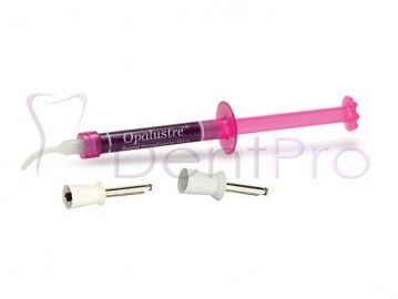 El Opalustre Kit de Ultradent es una pasta viscosa de ácido clorhídrico al 6,6% que contiene micropartículas de carburo de silicio en una base hidrosoluble. Opalustre permite la eliminación química de las manchas junto con una suave abrasión mecánica. Se recomienda su uso para eliminar rápidamente los defectos estéticos de descalcificación del esmalte existentes a una profundidad inferior a 0,2 mm