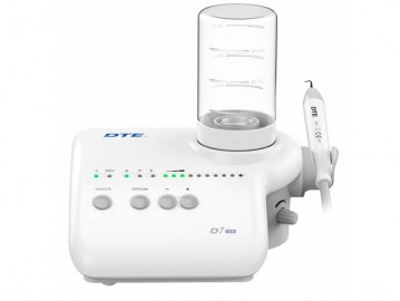 | Características: Con depósito para líquidos o medicamentos de tratamiento. -Pieza de mano tipo SATELEC (Desmontable y autoclavable). -Con 8 puntas - insertos. Entrada de la unidad principal 24V-50Hz / 60Hz 1.3A; Potencia de salida 3W-20W. -Frecuencia 28kHz ± 3kHz. -Presión de agua 0.1bar ~ 5bar (0.01MPa ~ 0.5MPa). -Unidad de peso principal 1,17 kg. -Peso del transformador 1 kg. -Dimensiones 241 mm × 193 mm × 97 mm. | Contenido: Unidad de escala LED D7, Pieza de mano con escala ultrasónica LED DTE D7, Conjunto de 8 puntas de escala, Archivos endodónicos, Llave de torsión, Paquete de energía, Interruptor de pie, Botella de agua, Manguera, Operación manual. Referencia(s) del Fabricante: SCALER-D7 LED |