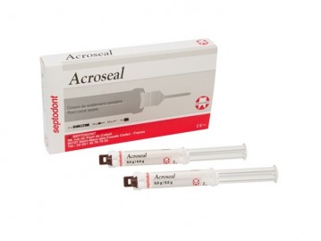 | Características: Contiene hidróxido de calcio, que contribuye a mejorar la cicatrización periapical. -No es soluble en agua, por lo que el riesgo de que falle el tratamiento es mínimo. -El cemento Acroseal no contiene eugenol y es radiopaco, permitiendo un fácil seguimiento a corto y largo plazo. -Acroseal se presenta en jeringas automezclantes para una óptima aplicación, sin pérdidas ni errores de mezcla. -El envase contiene 2 jeringas de 8,6g + accesorios. | Contenido: 2 Unidades. Referencia(s) del Fabricante: 5677L |