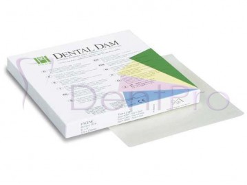 | Características: -No contiene talco -Buena adaptación al cuello del diente -Resistente al al desgaste, similar al dique de goma natural -Sin polvo -Color verde -Medida 152 x 152 mm | Contenido: -Caja de 15 diques Referencia(s) del Fabricante: -H09105 HY |