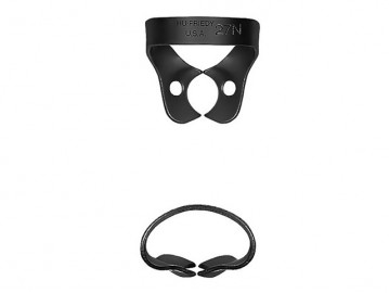 La Clamp RDCM27NX de Hu-Friedy es una de las muchas abrazaderas en la extensa línea de abrazaderas de diques de hule de Hu-Friedy para aplicación anterior, premolar y molar. El revestimiento oscuro proporciona un hermoso contraste intraoral, lo que hace que el sitio de restauración sea más fácil de navegar.