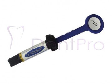 El Octolight de Clarben es un composite nanohíbrido fotopolimerizable, con una base constituida por resinas: Bis-GMA, UDMA, Bis-EMA, TEGDMA y un alto contenido de relleno inorgánico del 77.5%. Dicho material de relleno es sílice y vidrio de bario. Al ser Octolight un nanohidrido, se utilizan sílice con tamaño de partícula de 12nm, vidrio de bario de 80nm y partículas de vidrio de bario de 0.8 micras. Gracias a esta formulación Octolight de Clarben consigue una fuerte oposición a la contracción de las resinas, mayor resistencia a la abrasión y un material estable. Este material restaurador está indicado para su uso en restauraciones directas de clases I, II, III, IV y V; restauraciones indirectas como inlays, carillas y en reconstrucción de muñones. Octolight es un composite altamente estético que ofrece un excelente pulido para unas restauraciones de gran dureza