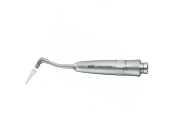 Las Piezas De Mano Perio Mate de NSK se utilizan en el tratamiento de bolsas periodontales y periimplantitis. En los procedimientos de higiene oral, resulta fundamental evitar lesiones en los tejidos blandos y en las superficies de la raíz dentro de las delicadas bolsas periodontales. El pulverizador de agua ultrafino de Perio-Mate y su Polvo con base de glicina se aúnan para eliminar con delicadeza la película biológica de las bolsas periodontales en tan sólo 20 segundos. Gracias a los años de experiencia acumulados en el análisis de la dinámica de fluidos para desarrollar su tecnología de turbinas, NSK ha concebido un sistema de pulverización seguro y tremendamente eficiente que permite una eliminación precisa y rápida de la placa bacteriana presente en las zonas subgingivales.