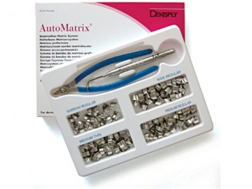 | Características: -Recomendado en trabajos de clase I y II -Utilizar en conjunto con el dispositivo de refuerzo AutoMate® III -Se ajusta a la superficie dentaria para facilitar la conformación del punto de contacto -Sin tensión excesivacontrol del torque con el dispositivo de ajustado - Sin necesidad de retenedoresconfort para el paciente y mejor campo de visión -Para restauraciones directas (Clase II, incluidas las mas profundas), 4 tipos (MT, MR, NR, WR) | Contenido: -24 Bandas tamaño medio-delgado -24 Bandas tamaño mediano-normal -24 Bandas tamaño estrecho-normal -24 Bandas tamaño ancho-normal -1 Dispositivo de refuerzo Automate III -1 Par de pinzas Referencia(s) del Fabricante: -624.22.501 DT |