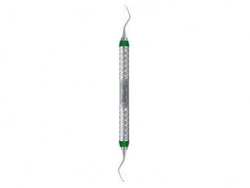 Esta herramienta cuenta con una punta más pequeña y delgada, lo que le permite llegar a zonas estrechas y profundas de la bolsa periodontal. Además, el mango más corto de 9 pulgadas brinda mayor control y precisión durante los procedimientos de raspado y alisado radicular.