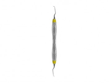 El revestimiento amarillo del mango brinda al operador una mayor sensibilidad táctil y maniobrabilidad durante el raspado y alisado radicular.