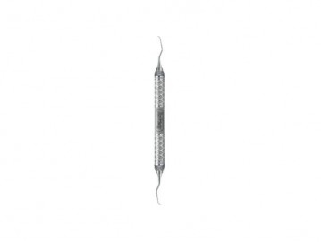 Su diseño ergonómico, con mango de gran diámetro (nº 9) y estrías en forma de diamante, proporciona un agarre seguro y cómodo, reduciendo la fatiga del odontólogo. La hoja cuenta con un acabado superpulido para un raspaje eficiente y preciso. Ideal para trabajar en zonas labiales y linguales, esta cureta es una herramienta indispensable en cualquier consultorio dental.