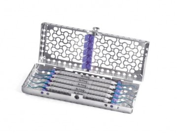 El IMS Cassette Serie Infinity DIN Violeta Kit 5 Curetas IMEDIMPLM de Hu-Friedy es un sistema de almacenamiento y esterilización diseñado específicamente para el cuidado de implantes dentales. Este kit incluye un cassette de color violeta y cinco curetas de titanio, instrumentos esenciales para la limpieza y mantenimiento de implantes. El diseño innovador del cassette garantiza una limpieza óptima y una organización eficiente de los instrumentos.