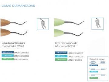 | Características: El modelo SV 5-6 cuenta con una punta curva redonda con revestimiento de diamante, y está indicada para lesiones de bifurcación agudas. -El modelo SV 7-8 cuenta con una punta ovalada con revestimiento de diamante, y está indicada para lesiones de bifurcación profundas. -De uso profesional. | Contenido: 1 Unidad. Referencia(s) del Fabricante: 255-256DXSI, 257-258DXSI |