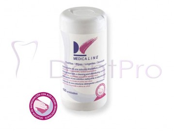 | Características: -Toallitas desinfectantes perfumadas -Sin irritantes ni oxidantes -Para desinfectar instrumental y pequeñas superficies -Solución bactericida, fungicida y activa frente a varios virus | Contenido: -Bote de 100 unidades con tapa de uso fácil Referencia(s) del Fabricante: -TOALLITA ML 100u. ML |