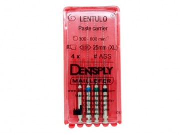 | Características: -Rotatorios de gran flexibilidad, rellenador de pasta que permite llegar facilmente al fondo de la cavidad, eliminando el aire existente -De 25 mm. | Contenido: -Paquete de 4 léntulos Referencia(s) del Fabricante: -A002222500100 |