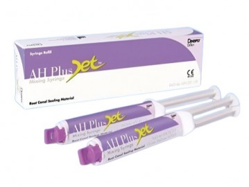 El AH Plus Jet (Reposición) de Dentsply DeTrey es una resina radiopaca de gran resistencia para la obturación de los conductos radiculares en endodoncia a base de epoxiamina totalmente compatible. AH Plus Jet Starter Kit de Dentsply viene presentado en jeringa automezcla facilitando el manejo del cemento y alarga la conservación del producto evitando que se seque. La jeringa mezcla automáticamente los componentes de sellador en la proporción ideal. Reduciendo el tiempo de trabajo. Resina consistente con facilidad de mezclado y eliminación. Posibilidad de aplicación intraoral directa utilizando las puntas mezcladoras. Lo que ofrece más precisión y menos tiempo de trabajo, sin desperdicio de material
