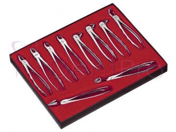 | Características: Juego de 10 fórceps para: - Premolares superiores - Molares derechos superiores. - Maxilar inferior, anteriores y premorales. - Maxilar superior, molares derechos - Maxilar superior, molares izquierdos - Maxilar inferior, molares derechos e izquierdos. - Maxilar inferior, raices. - Maxilar superior, raices. - Maxilar superior, cordales. - Maxilar inferior, cordales. Incluye estuche organizador. | Contenido: Referencia(s) del Fabricante: LS100 |