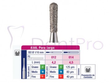 FRESA DE DIAMANTE FG 830L PERA LARGA 5u, fresa de diamante FG con forma de pera larga (830L)