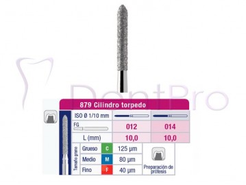 FRESA DE DIAMANTE FG 879 CILINDRO TORPEDO LARGO 5u.