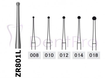FRESA DE BOLA CON CUELLO LARGO ZR801L DE DIAMANTE PARA TURBINA TALLO LARGO 5u.
