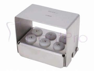 | Características: -Medidas: Largo: 4,5cm; Alto: 4cm; Ancho: 3cm. -Soporte de fresa fabricado en acero inoxidable y silicona blanca. -Capacidad para 6 instrumentos. -Autoclavable 135º. | Contenido: -1 Unidad. Referencia(s) del Fabricante: 11/026 |