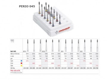 | Características: Para tratamiento periodontal mecánico-instrumental, ampliar bifurcaciones y constricciones radiculares, depurar las superficies radiculares, remoción de depósitos y sarro incluso en zonas de difícil acceso y pulido final de las superficies radiculares. -12 instrumentos con partes activas cónicas y con lanza, dimensiones ISO 012, 014 y 016, en grano 75, 40 y 15µm con cuello corto risp. largo. | Contenido: 1 Unidad. Referencia(s) del Fabricante: PERIO |