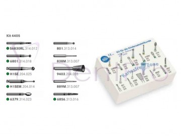 | Características: -Los instrumentos de micro preparación con un mango corto 313 permiten el tratamiento óptimo de dientes muy sensibles en bocas pequeñas y con poco espacio o apertura. -Los instrumentos de diamante muy finos permiten al dentista visibilidad perfecta durante el procedimiento. -Además de los instrumentos de mango corto, el eficiente juego 4405 pone a disposicion otros, también necesarios ropara el tratamiento seguro y sencillo lesiones cariosas en niños. -De uso profesional. | Contenido: -1 Fresero + 10 Fresas: S6830RL.314.012, 6801.314.018, H1SE.204.025, H1SEM.204.014, 6379.314, 801.313.014, 838M.313.007, 9403.204.055, 889M.313.007, 6856.313.016 Referencia(s) del Fabricante: 34392K0 |