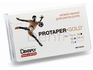 | Características: -La múltiple conicidad mejora la flexibilidad la eficacia de corte y reduce el stress -Tamaños disponiblesSX; F1; F2; F3; F4; F5 | Contenido: -60 Gutapercha Protaper Gold del tamaño elegido Referencia(s) del Fabricante: -A241X00090100 -A241X00000100 -A241X00000200 -A241X00000300 -A241X00000400 -A241X00000500 |