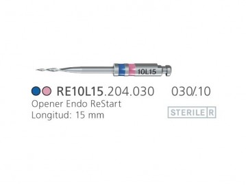 | Características: Removedor de gutapercha. -La Endo ReStart Opener tiene una conicidad constante de 10% 030 mm de diámetro longitud: 15mm parte activa corta (5mm) punta de 4 superficies estéril y reutilizable. -Las Limas Endo ReStart tienen una conicidad constante de 5%, 025 mm de diámetro, longitud de 25 mm, punta de 2 superficies, estéril y de un solo uso. | Contenido: 6 Unidades. Referencia(s) del Fabricante: 49908R0 |