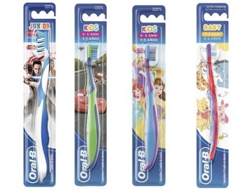 | Características: Disponible en modelo baby, junior y kids. -Oral-B Baby es el primer cepillo de dientes para bebé. Los profesionales dentales aconsejan que los padres comiencen a cepillar los dientes del bebé desde que empiezan a salir. Presenta los filamentos más suaves, en un cabezal redondeado que cubre superficies amplias y masajea suavemente las encías. El mango ergonómico está adaptado a las manos de los padres e incluye un agarre antideslizante y una zona para el pulgar que mejoran el control. Ideal para niños de hasta 2 años. Diseñado para niños de 0 a 2 años. -Oral-B Junior está indicado para niños en edad de 3 a 5 años. -Oral-B Kids está indicado para niños en edades de 6 a 12 años. | Contenido: 1 Unidad. Referencia(s) del Fabricante: 3014260100636, 3014260100667cars, 3014260100667princ, 3014260100698 |