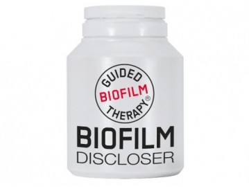 El revelador de biofilm DV-158 de EMS es una herramienta diagnóstica esencial para la higiene dental profesional y la educación del paciente. Estas tabletas masticables tiñen selectivamente la placa dental y el biofilm, haciendo visibles las áreas donde se acumulan los depósitos bacterianos. Esto permite al profesional identificar con precisión las zonas de difícil acceso o con higiene deficiente, y educar al paciente sobre técnicas de cepillado y limpieza interdental más efectivas.