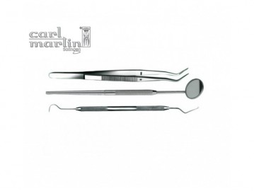| Características: Material: acero inoxidable. -El explorador doble o sonda de exploración doble, es un instrumento fabricado para el diagnóstico de caries y uso general en odontología. -La pinza de exploración goza de una punta de mayor tamaño y angulación. -El mango para espejo viene con rosca Cone Socket. | Contenido: 1 Set que incluye 1 Explorador, 1 Pinza y 1 Mango de espejo. Referencia(s) del Fabricante: CM1300-ES |