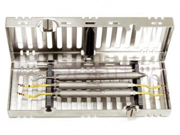 | Características: -Cada instrumento cuenta con una guía visual codificada en colores para fácil distinción -Kit compuesto por tres calibres y un práctico Cassette de acero IMS para facilitar su protección y correcta esterilización -Utilizados para mediciones rápidas y precisas durante un procedimiento de alargamiento de la corona | Contenido: -1 Calibrador de Proporción (PROGS), 1 Calibrador de Alargamiento de Coronas (CLGS), 1 Calibrador de Sondaje (SOUNDS) y 1 x IM6051 cassette (76x203x32mm) Referencia(s) del Fabricante: -SCHUSET HF |
