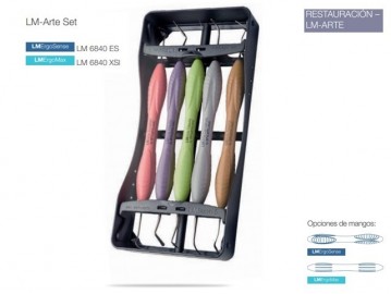 | Características: Las puntas de los instrumentos LM-Arte han sido diseñadas especialmente para la estratificación de composite. -Están fabricadas con acero superior LM-DuraGradeMax antiadherente, de pulido excepcional. -Cada instrumento LM-Arte está codificado con un color y su nombre corresponde a su función principal, lo que permite unos tratamientos restaurativos rápidos, eficaces y sencillos. | Contenido: 1 LM-Arte Applica, 1 LM-Arte Condensa, 1LM-Arte Fissura, 1LM-Arte Misura, 1LM-Arte Eccesso, 1 Casete LM-Servo 5. Referencia(s) del Fabricante: 6840ES |
