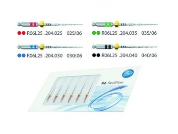La Lima R6 Reziflow R06 de Komet Dental cuentan con un diseño adecuado al movimiento recíproco y gracias a que la lima tiene pocas espiras tienen un reducido efecto de enroscado. De este modo las limas trabajan de manera sensiblemente más delicada y el operador mantiene el control de la lima en todo momento del tratamiento. Además, gracias al especial corte transversal las limas se adaptan perfectamente a la trayectoria original del canal y garantizan una retirada efectiva de la sustancia.