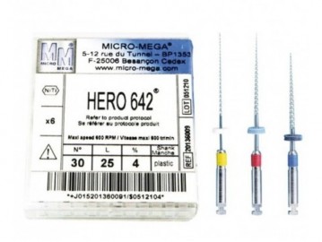 | Características: Indicaciones Clínicas Indicadas para el acabado del tercio apical, la instrumentación completa de conductos muy finos o con curvaturas severas y para la creación de una vía de deslizamiento (glide path) mecanizada antes de usar limas de mayor conicidad. Ventajas de las Limas HERO 642 para el Profesional