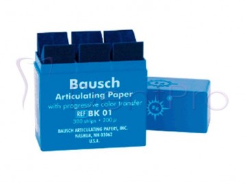| Características: -Permite una excelente visualización de los contactos de oclusión gracias a su sistema de coloración progresiva -Muestra una variación de color proporcional a la presión a nivel del punto de contacto, para poder apreciar mejor los resultados -Listo para usar con todo tipo de materiales (coronas metálicas, cerámicas, etc.) | Contenido: -300 Hojas Referencia(s) del Fabricante: -BK 01 BK |