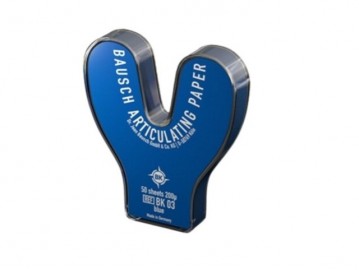 | Características: -Solamente el papel de articular Bausch de 200 micras con coloración progresiva puede visualizar tan claramente interferencias existentes en las fuerzas masticatorias -Despues de ajustar o localizar los contactos erróneos se debería seguir trabajando con medios de control más delgado -Espesor 0,2 mm -Disponibles en azul y rojo | Contenido: -50 Hojas Referencia(s) del Fabricante: -BK 03 BK |