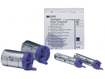 | Características: Indicaciones Clínicas Utilizado como material de cubeta en la técnica de doble mezcla para impresiones detalladas de preparaciones para coronas, puentes, inlays, onlays y superestructuras de implantes. Ventajas del IMPREGUM PENTA H DUOSOFT 2x(300+60)ml. para el Profesional