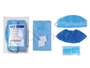 | Características: -Cuenta con los elementos necesarios para intervenciones - Su práctica etiqueta adhesiva permite una fácil trazabilidad de las intervenciones clínicas | Contenido: -Cada kit está compuesto por: 1 Bata hidrorepelente con puño en TNT azul, 1 Cofia con lazos regulables en TNT azul, 1 Mascarilla SPIRITUS PLUS® con elásticos en TNT azul y 2 Cubrezapatos impermeables en PVC azul Referencia(s) del Fabricante: -21OM KITOPE 12.T0107 OM |