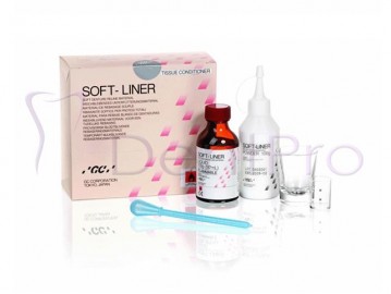 | Características: -Soporta cicatrizaciones -Acondicionador para tejido oral -Indicado para rebases temporales en dentaduras totales y parciales o como material de impresiones funcionales -Buen efecto de retención de la tensión de superficie -Bajo desarrollo de calor Color translúcido | Contenido: -1 frasco de polvo de 100 gr color translúcido -1 frasco de 100 ml líquido -Accesorios Referencia(s) del Fabricante: -000384 GC |
