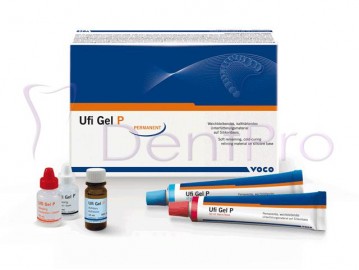 El UFI Gel P de Voco es un material de rebase permanente de silicona A blanda en tubos para prótesis completas y parciales, utilizado en tratamiento de puntos de presión. Mejora el asentamiento y soporte, y es usado como almohadilla en procesos alveolares agudos